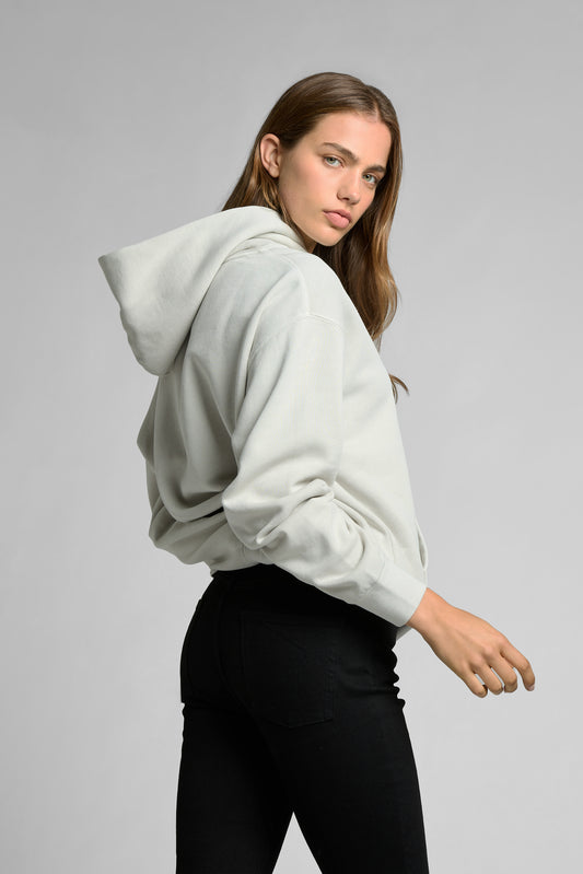 Women's Faded Bone Monochrome Embroidered Hoodie | Relaxed Fit, Mid-Weight Fleece by Vived-Mota Co.