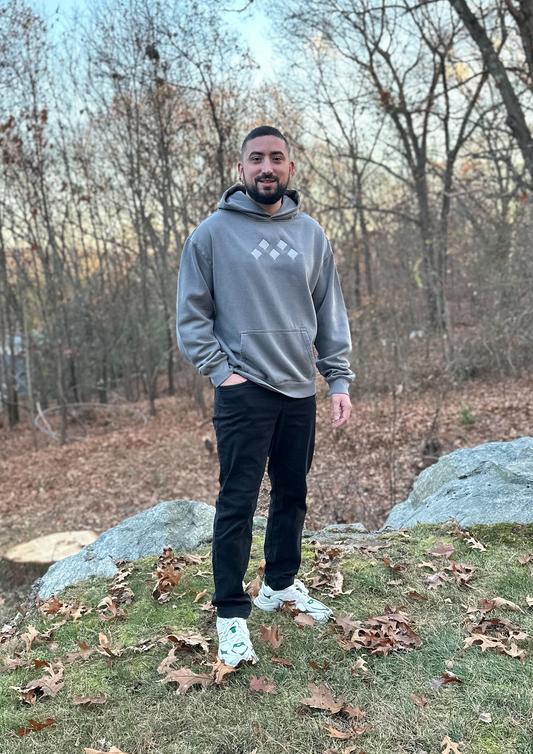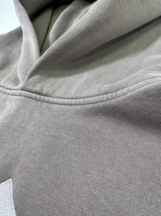 Men's Faded Grey Monochrome Embroidered Hoodie | Relaxed Fit, Mid-Weight Fleece by Vived-Mota Co.